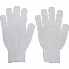 <特長>・吸湿性が良く、軽作業に最適、薄手タイプ、すべり止め付で女性向きです。<用途>・一般軽作業<仕様>・色:ホワイト・サイズ:女性用・全長(cm):21.5・手のひら周り(cm):18.0・中指長さ(cm):7.0・厚さ(mm):1.5・10ゲージ編<材質/仕上>・繊維部:綿100%・すべり止め部:塩化ビニール<入数>5双