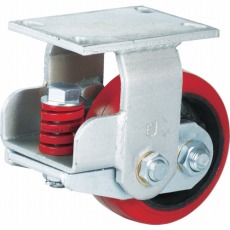 <特長>・牽引用キャスターです。・牽引の最大時速20キロまで対応可能です。(シシク試験データ参考値)・走行時の振動・衝撃はもちろん、騒音の発生も減少します。・車輪に加え緩衝支点部にも密閉型ラジアルボールベアリングを使用し、グリースの注入なしでも静かで滑らかな動きが可能です。・旋回部はテーパーローラーベアリングとスラストベアリングのダブル構造で大きな衝撃にも対応します。