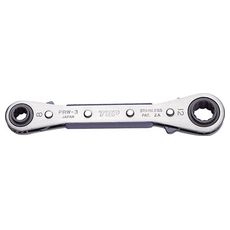 ●特長・スリム設計と細かいラチェットギア歯により、狭所でのスピーディな作業を実現します。・各パーツには焼入合金鋼(ハンドル部はニッケルクロムメッキ)を使用しており、耐久性が高いです。●仕様・全長(mm):110・対辺寸法(mm):7×8・厚さ(mm):7.6・歯数(枚):7mm-14、8mm-15【材質/仕上】・ニッケルクロムメッキ焼入合金鋼