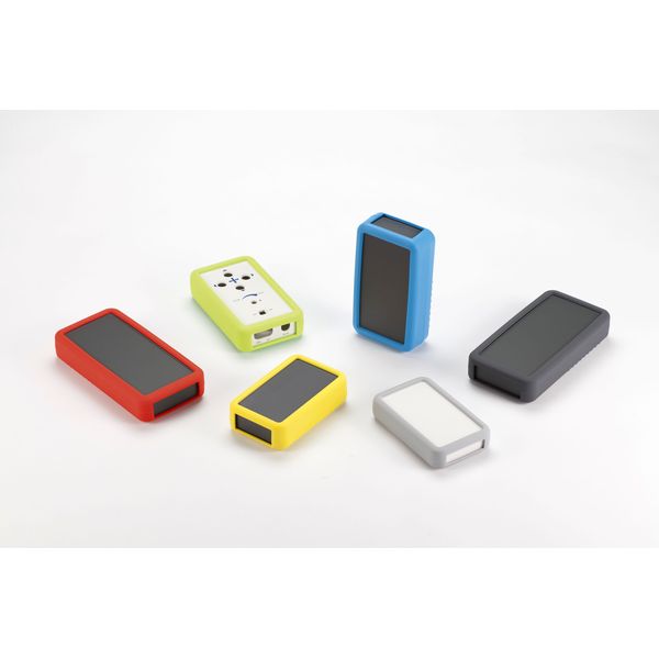 ・シリコンカバー付のハンドタイプケースです。カバーは弾力がありますので滑りにくく、落下などの衝撃から機器を保護します。