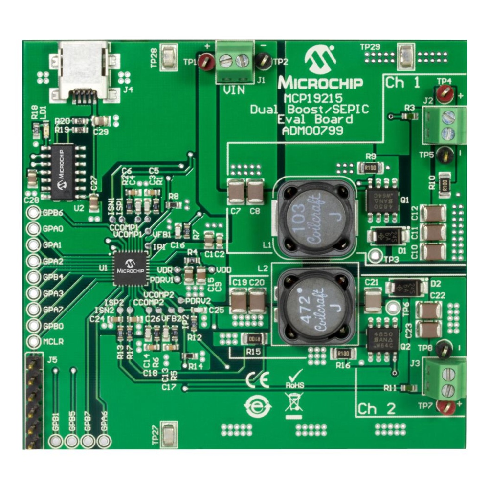 Kit Contents:Eval Board MCP19215 USB A to Mini-USB Type B Cable Information Sheet