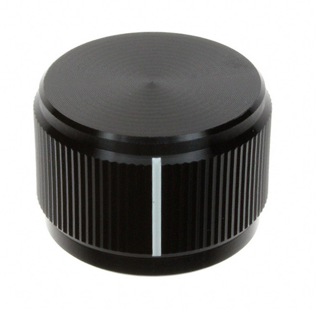 【仕様】・パッケージング:バルク・シリーズ:KN・スタイル:円筒状・タイプ:ナールド、ストレート・シャフトサイズ:0.250インチ(6.35mm)・直径:0.949インチ(24.10mm)・高さ:0.625インチ(15.88mm)・インジケータ:サイドのライン・材料:金属・色:黒・特長:6-32固定ネジ(2)