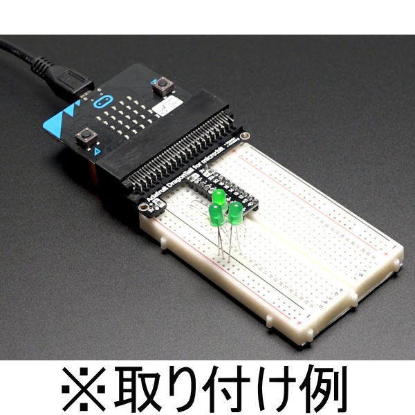 このブレイクアウトボードはmicro:bit用のカードエッジコネクタを搭載し、簡単にブレッドボードを利用できます。ワニ口クリップやはんだ付けなどは不要です。