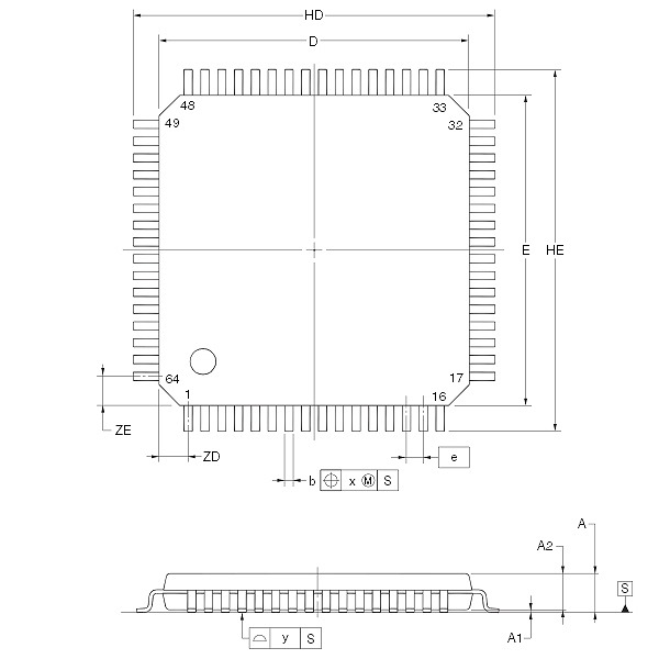 ・梱包形態/ケース :64ピンLQFP