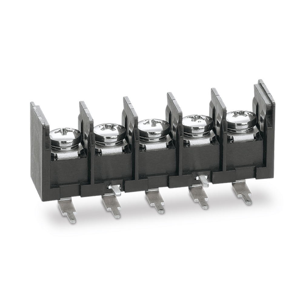 基板用ねじ式端子台 M4セムスねじ 10mmピッチ 20A 250V 6極 ライトアングル サポート端子付き
