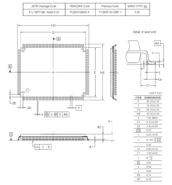 ・梱包形態/ケース :128ピンLFQFP