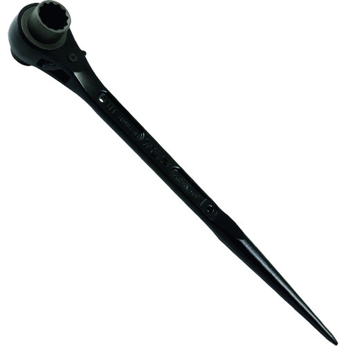 ・機械・設備・配管・建設等あらゆる産業のボルト・ナット脱着に最適です。強い締付を必要とするボルト締結に適しています。頭部は加工の際の穴埋めを施してあり、円滑なラチェット駆動を維持します。シノ部は鉄骨等の穴合わせに便利です。爪部は鍛造品で強度があり、本体表面は錆びにくいカチオン塗装仕上げです。