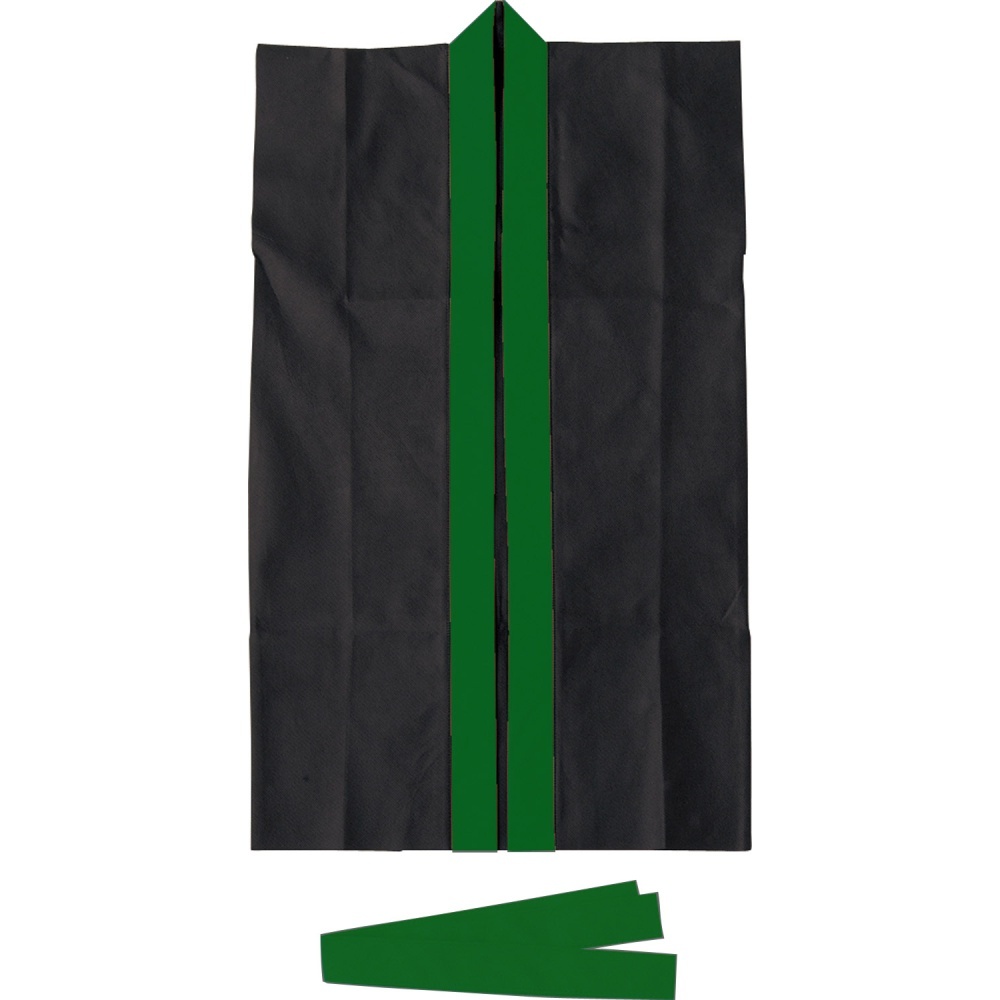 ロングハッピ不織布 黒(緑襟)S(ハチマキ付)