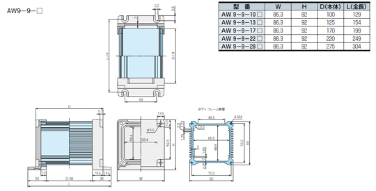 AW型フランジ足付防水・防塵アルミケース(シールドタイプ)125mm【AW9-9-13ESS】