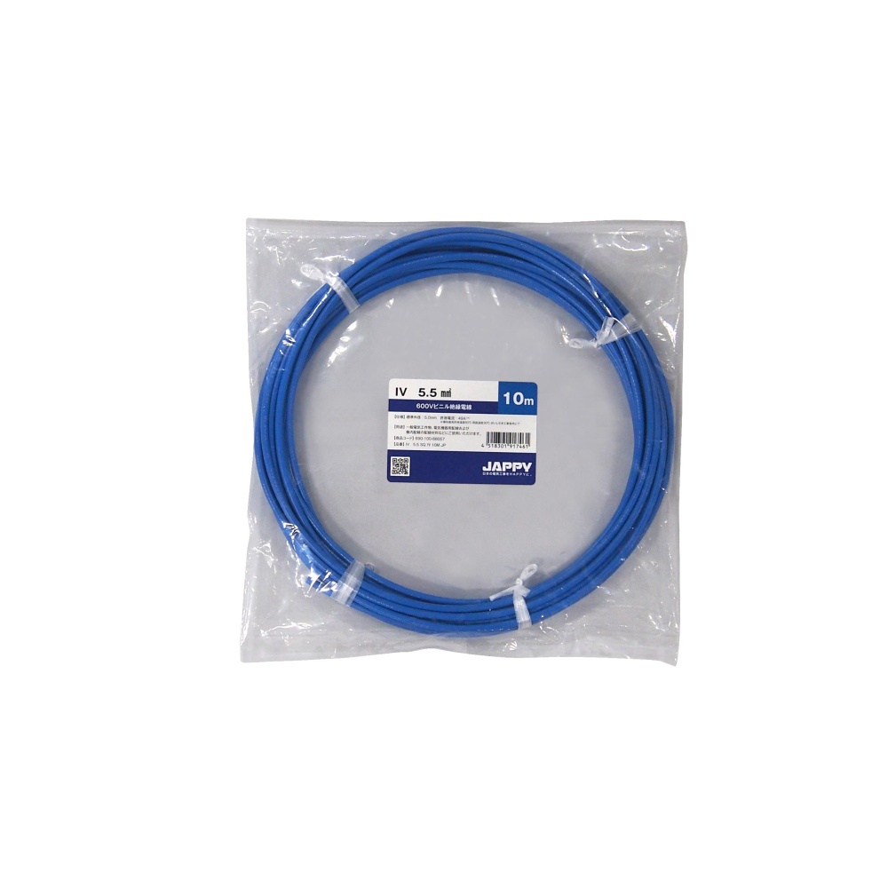 ビニル絶縁電線【IV-5.5SQアオ-10M-JP】