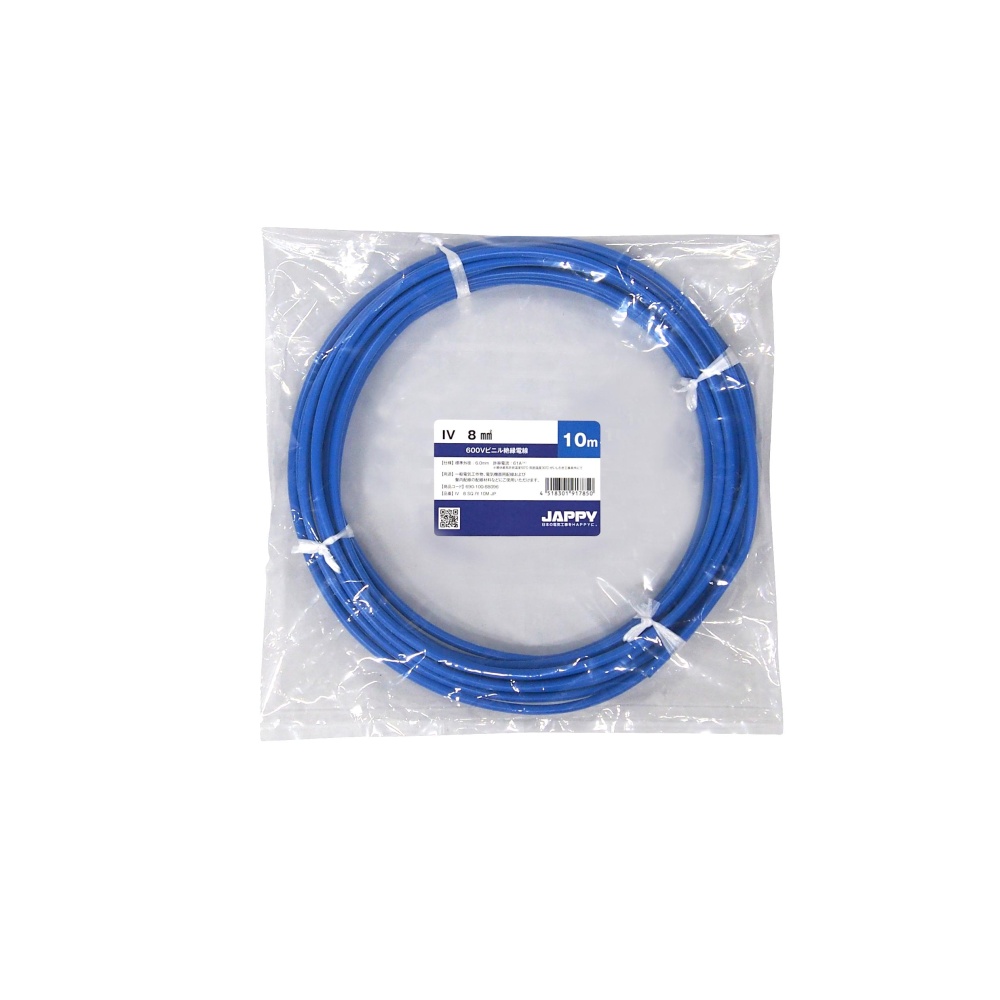 ビニル絶縁電線【IV-8SQアオ-10M-JP】