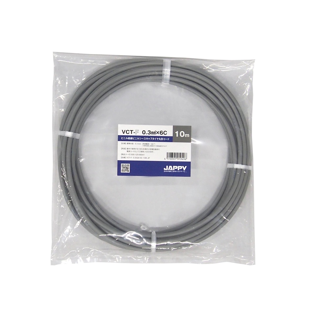 キャブタイヤ丸形コード【VCT-F-0.3SQX6C10M-JP】
