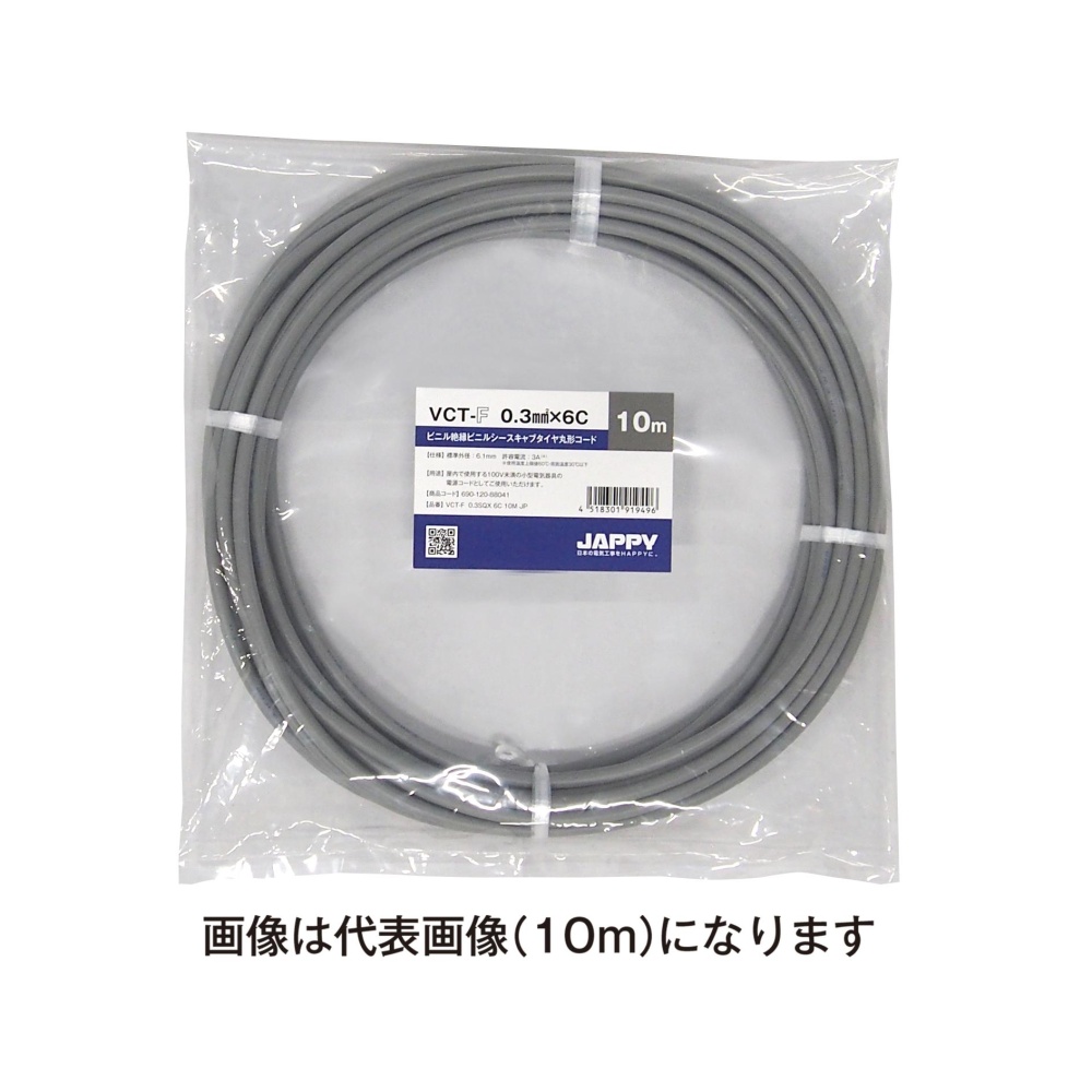 キャブタイヤ丸形コード【VCT-F-0.3SQX6C20M-JP】