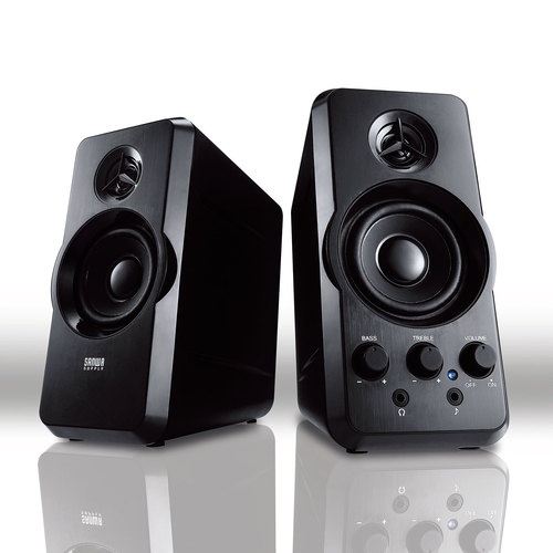 ・実用最大出力20Wのハイパワーと奥行きのあるハウジングで広がりのある音を再現できる2chマルチメディアスピーカーです。