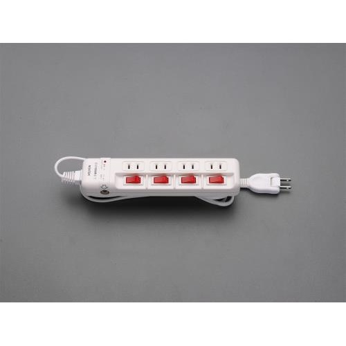 AC125V/15Ax 2m タップ(4口・個別スイッチ・雷サージ)【EA815GL-333A】