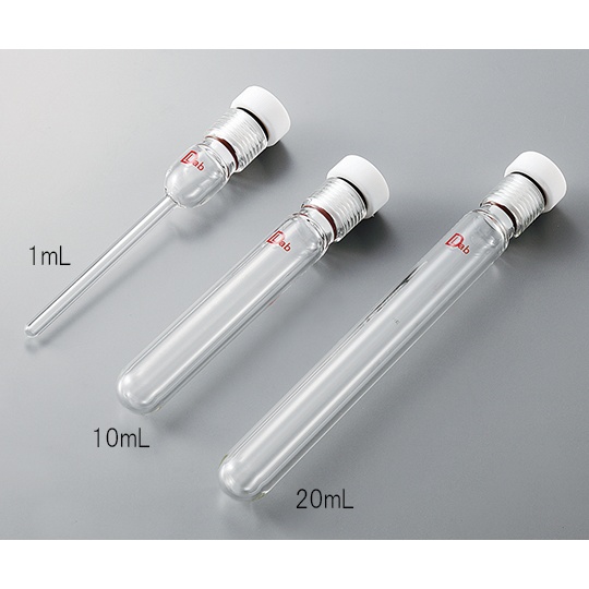 ●材質:チューブ/硼珪酸ガラス、フタ/PTFE、シール/バイトン(R)(フッ素ゴム)