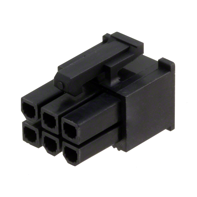 【仕様】・パッケージング:バルク・シリーズ:Mini-Fit Jr 5557・コネクタタイプ:レセプタクル・コンタクトタイプ:雌ソケット・極数:6・ピッチ:0.165インチ(4.20mm)・列数:2・列間隔:0.165インチ(4.20mm)・取り付けタイプ:フリーハンギング・コンタクト終端:圧着・締め具タイプ:ラッチロック・色:黒