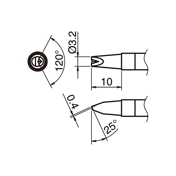 こて先3.2D型V溝付【T39-DR32】
