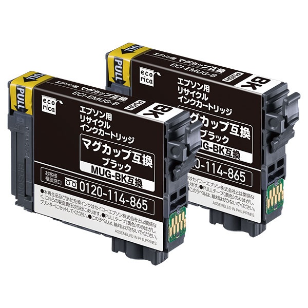 エプソン用リサイクルインクカートリッジ マグカップ互換 MUG-BK互換 ブラック 2個パック【ECI-EMUGB-2P】