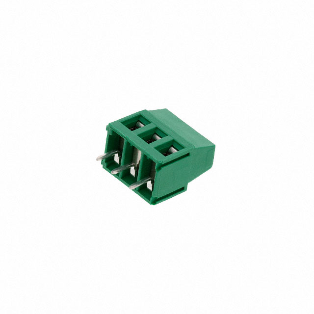 【仕様】・パッケージング:バルク・シリーズ:-・レベル数:1・レベルあたりの極数:3・ピッチ:0.200インチ(5.08mm)・嵌合方向:ボードに対して水平・電流:15A・電圧:300V・ワイヤゲージ:14-30 AWG・取り付けタイプ:スルーホール・ワイヤ終端:ネジ - ライジングケージクランプ・特長:インターロック(側面)・色:緑
