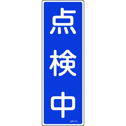 緑十字 短冊型安全標識 点検中 GR113 360×120mm エンビ 縦型【93113】