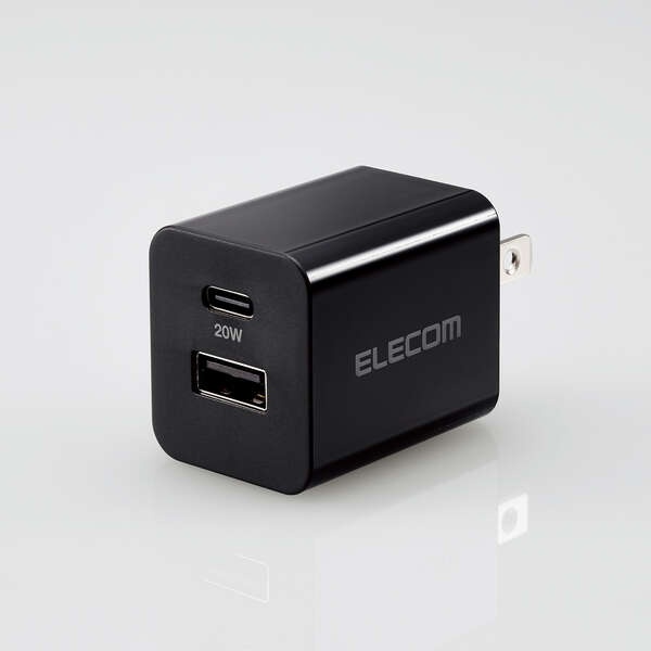AC充電器/USB充電器/スマホ/タブレット用/USB PD対応/20W/USB-C/USB-A/スイングプラグ/ブラック