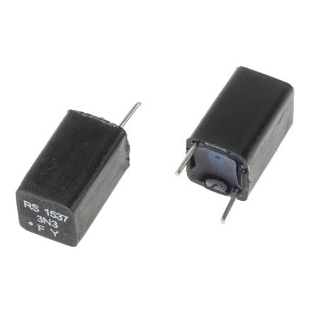 ポリスチレン フィルムコンデンサ、63V dc、3.3nF、±1%