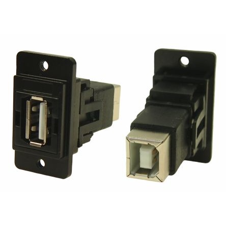 Type-A - B、USB2.0 フィードスルー USB コネクタ、メス、パネルマウント