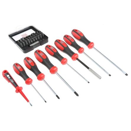 チップサイズ2 mm (六角), 2.5 mm (六角), 3 mm (六角), 3 mm (マイナス), 4 mm (六角), 4 mm (マイナス), 5 mm (六角), 5.5 mm (マイナス), 6 mm (六角), 6.5 mm (マイナス), PH1 (プラス), PH2 (プラス), PH3 (プラス), PZ1 (Pozidriv), PZ2 (Pozidriv), PZ3 (Pozidriv), T10 (Torx), T15 (Torx), T20 (Torx), T25 (Torx), T27 (Torx), T30 (Torx), T40 (Torx)