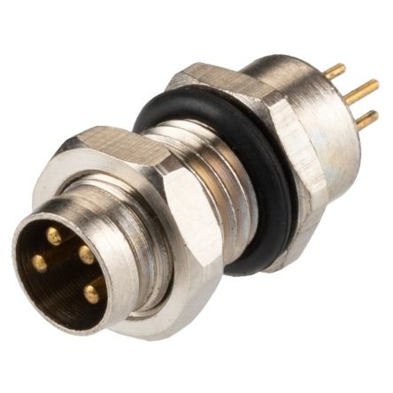 オス 丸型コネクタ、4極、M8、パネルマウント【208-0590】