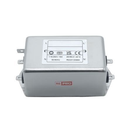 EMIフィルタ、電源ラインフィルタ、ノイズフィルタ、16A、115 / 250 V ac、1.相 シャーシーマウント【286-7281】