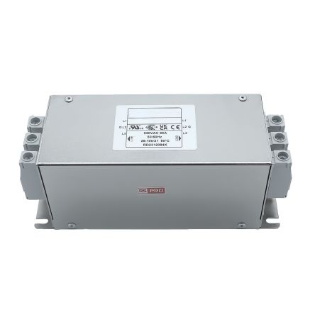 EMIフィルタ、電源ラインフィルタ、ノイズフィルタ、65A、300/520 V ac、3相 シャーシーマウント【286-7308】