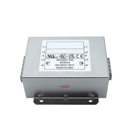 EMIフィルタ、電源ラインフィルタ、ノイズフィルタ、36A、300/520 V ac、3相 シャーシーマウント