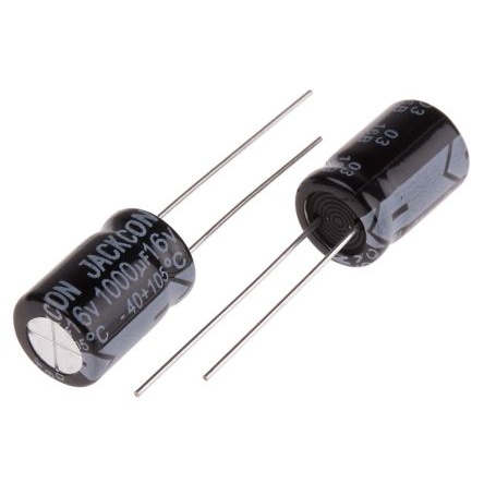 1000μF、16V dc コンデンサ、ラジアル、スルーホール ±20%、-40℃~105℃