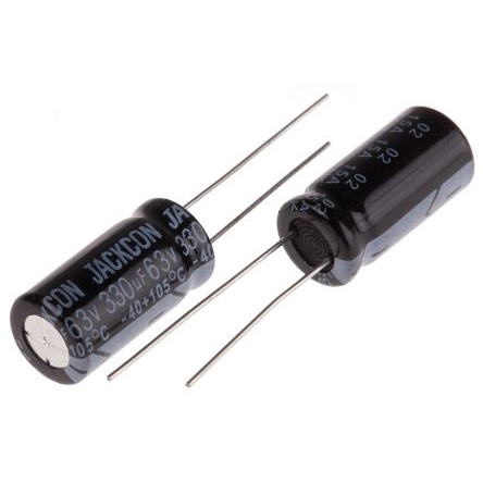 330μF、63V dc コンデンサ、ラジアル、スルーホール ±20%、-40℃~105℃