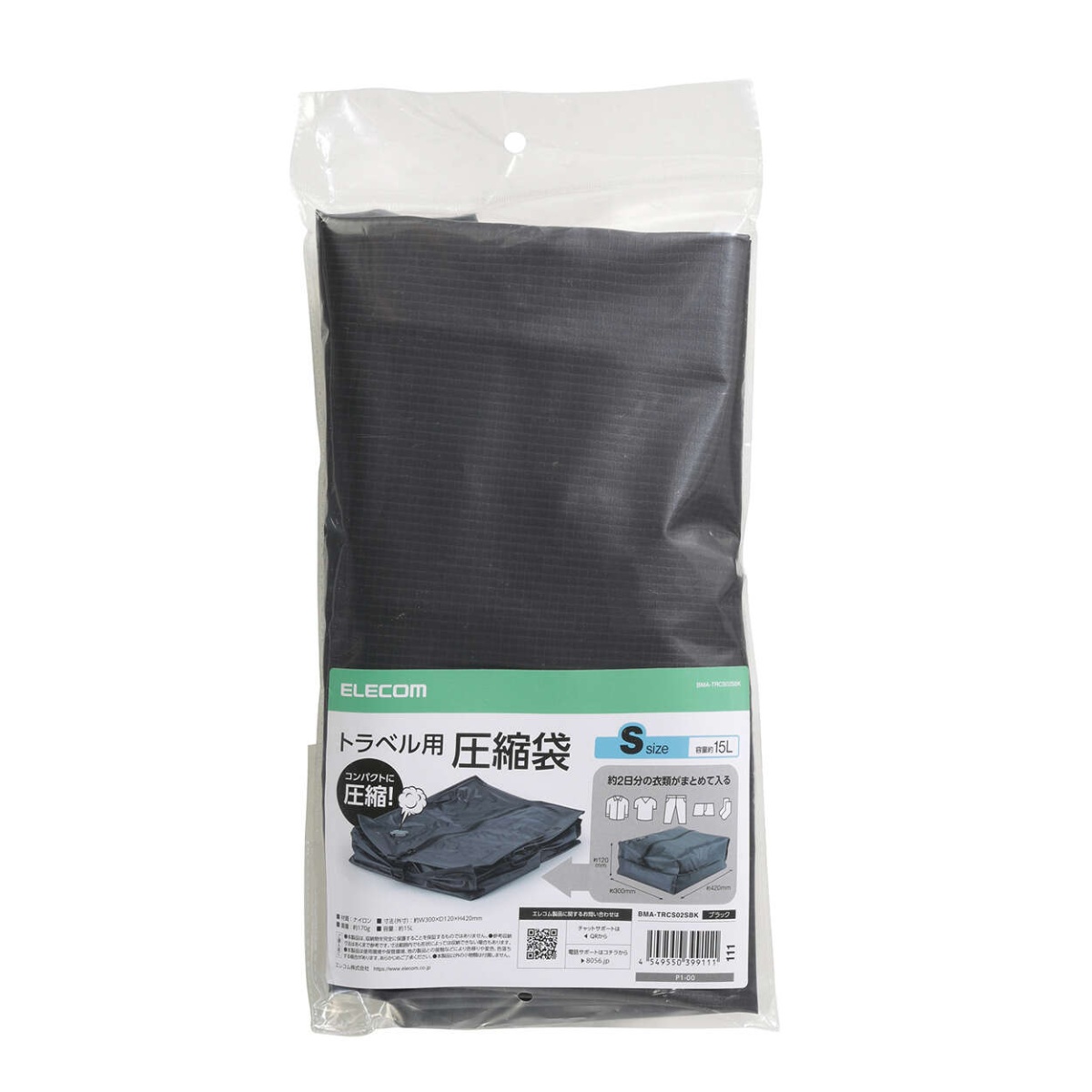 圧縮バッグ/トラベル向け/密閉用ファスナー/Sサイズ/ブラック【BMA-TRCS02SBK】