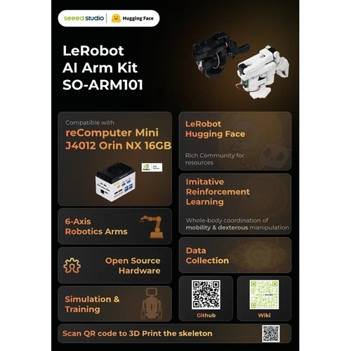 LeRobotとHugging Faceのプロジェクト向けに設計された模倣学習ロボットアームを自作できる、3Dプリントパーツのみのキットです。