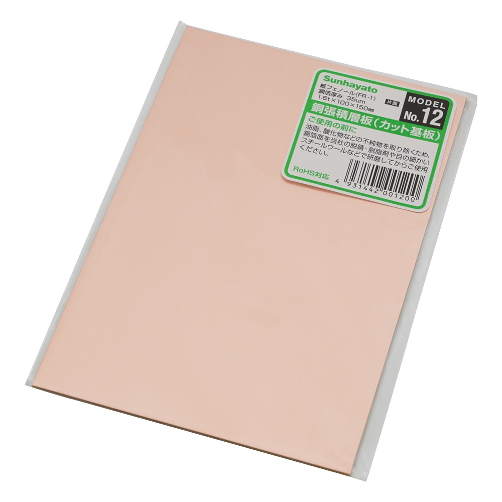 銅張積層板 (プリント基板) 紙フェノール・片面 100×150×1.6【No.12】