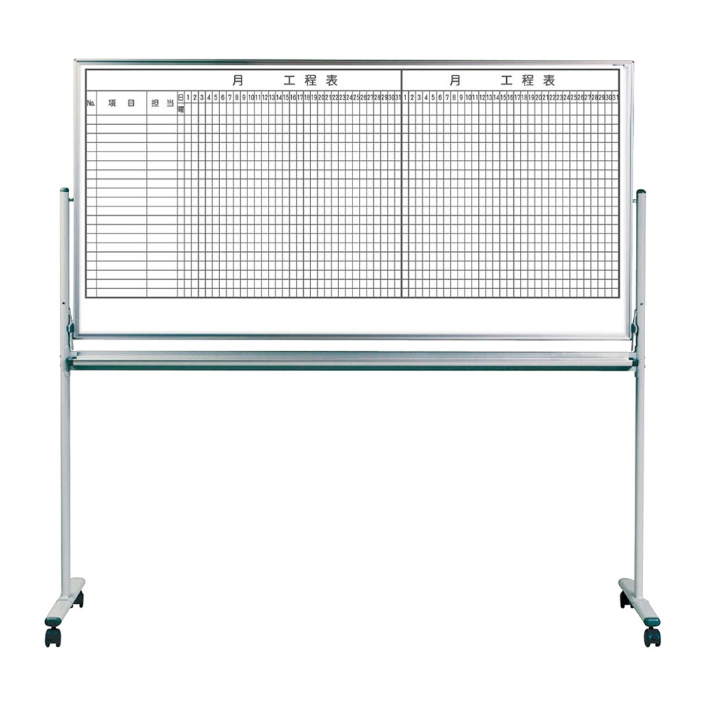 レーザー罫引工程表ホワイトボード 2ヶ月工程表・20段 脚付タイプ