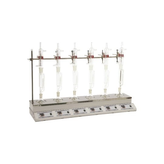 ●マグネチックスターラーを内蔵した6連のマントルヒーターでコントローラーが独立しているため、同じ条件や異なる条件での運転が可能です。