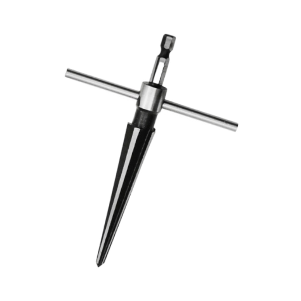 ・板材や木材の穴を滑らかに広げたり、バリ取りや面取りを行うための円錐形工具です。