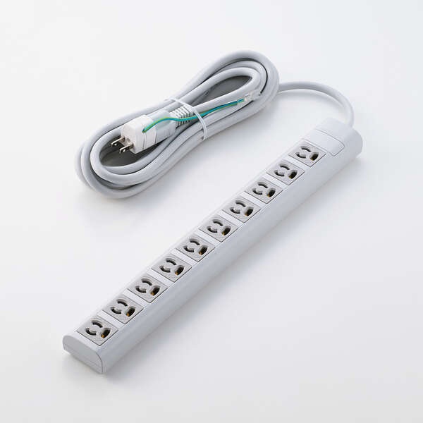 ・プラグと差込口はそれぞれ3ピン接続の構成で、10口ある差込口には抜け止め機能を備えています。