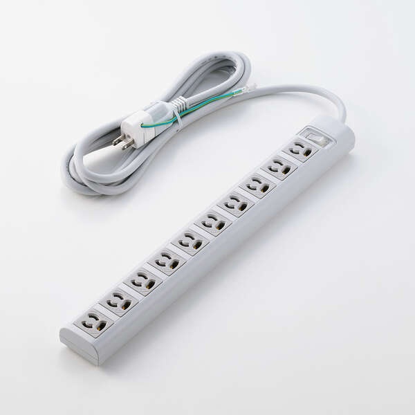 ・プラグと差込口はそれぞれ3ピン接続の構成で、10口ある差込口には抜け止め機能を備えています。