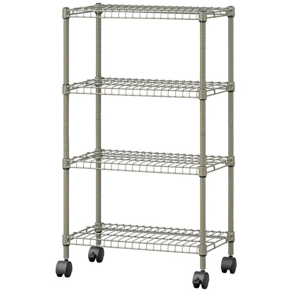カラースチールシェルフ 4段キャスタータイプ カーキ
