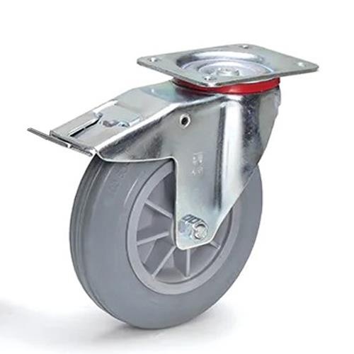 200mm キャスター(自在金具/ゴムタイヤ/ブレーキ付)