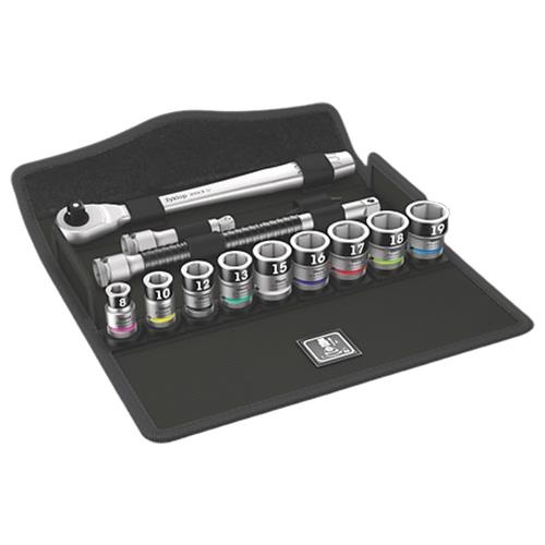 ・コンパクトな布製ボックスに収納されているラチェットセットです。