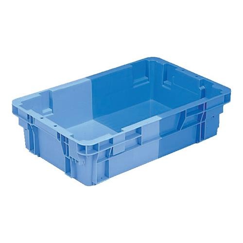 2色コンテナ(SNコンテナ)で採用されているタイプで、同色・同形状スタッキングタイプとも言います。製品を水平に180°回転させることで、スタッキング(積み重ね)とネスティング(収納)の二つの形態がとれるタイプです。スタッキング時は商品を収納しての搬送や保管に利用できます。空箱時はネスティングさせることで、容積を小さくでき、空箱の保管場所や運送費の削減が可能です。スタッキング時の耐荷重性を重視した設計で、段積み時の強度に優れています。製品詳細スペック内の「圧縮荷重」(スタッキングした製品の最大圧縮荷重を示しています。その値を4で割った数値以内をご使用の目安としてください)をご確認ください。