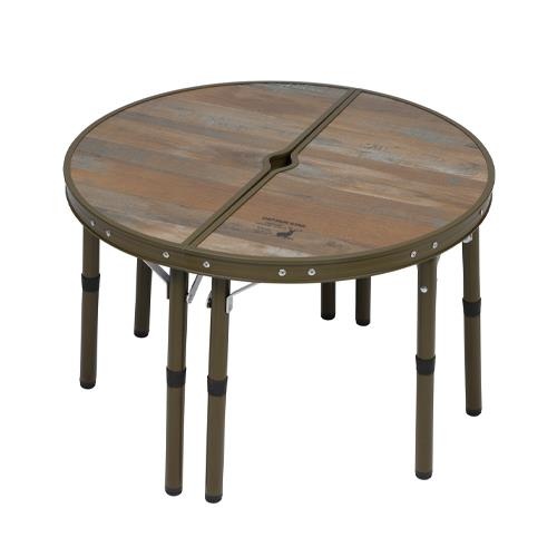 ・テントポールやパラソルポールなどを挟んで使える丸形テーブル。