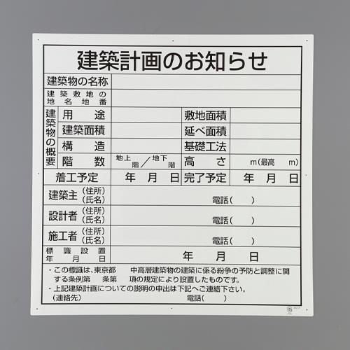 900x900mm 法令許可標(建築計画のお知らせ)【EA983BR-121】