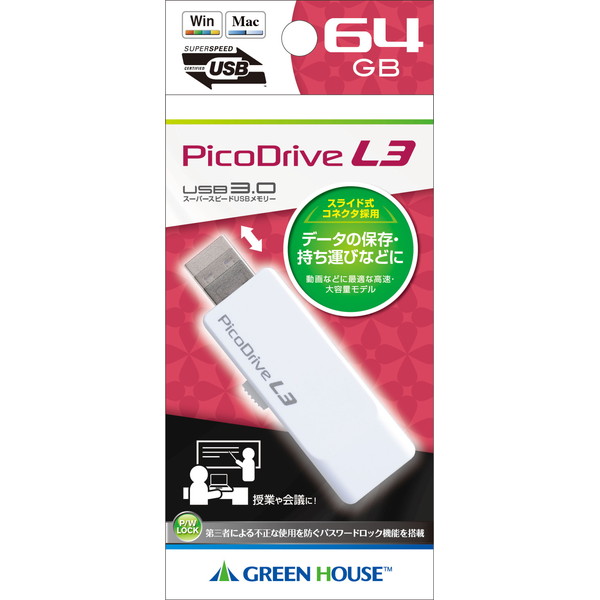 USB3.0フラッシュメッモリ 64GB【GH-UF3LA64G-WH】